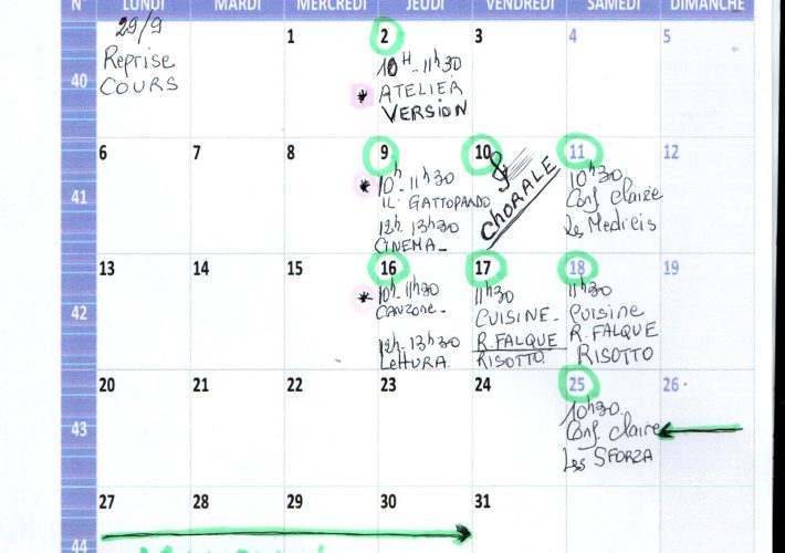 29 septembre : reprise des cours 2 octobre à 10h30 : atelier de version texte du…